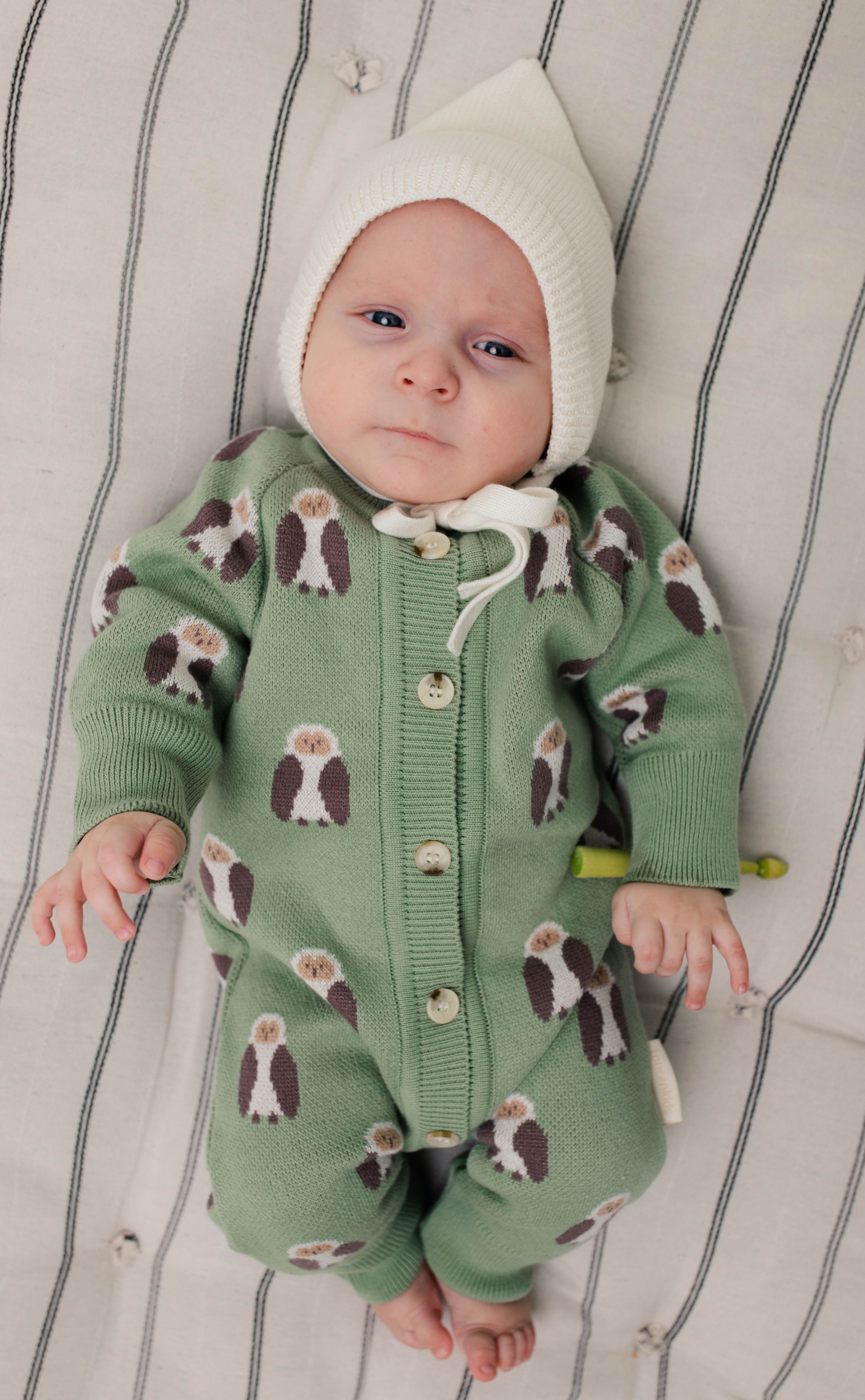 Шапочка выполнена с хлопковым подкладом, подходит ко всем нашим моделям вязаных комбинезонов.