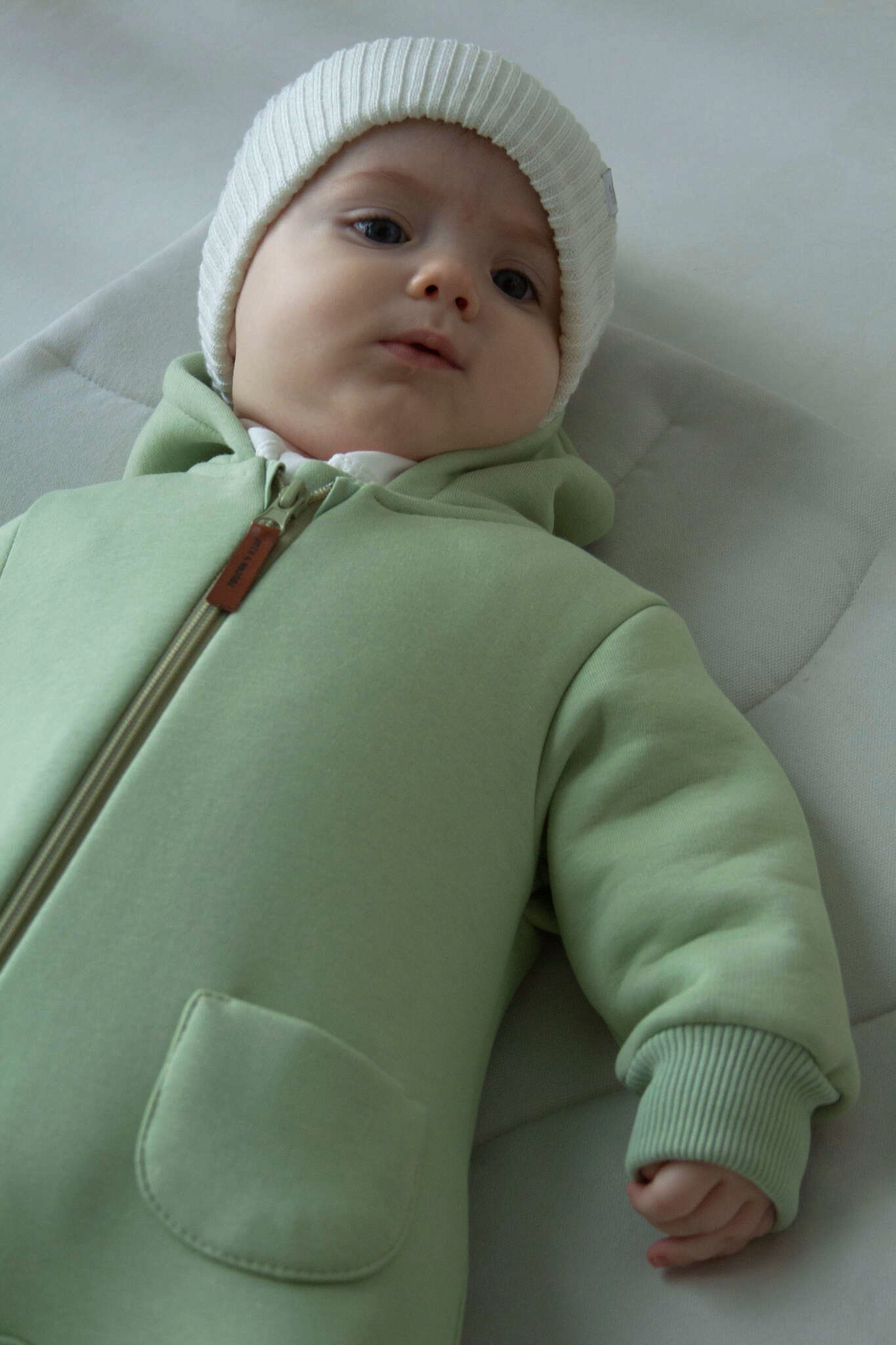 Мягкий, продуманный до мелочей и очень удобный — этот комбинезон станет любимым как для малыша, так и для мамы. Он идеально подходит для прогулок при температуре от +15 до +18 градусов, а в холодное время легко превращается в уютный промежуточный слой под верхнюю одежду. Практичная молния уходит в ножку, чтобы переодевание было быстрым и комфортным даже во сне.