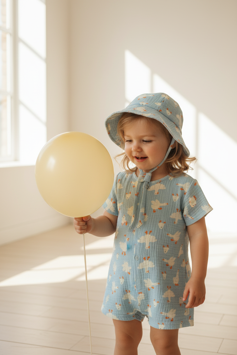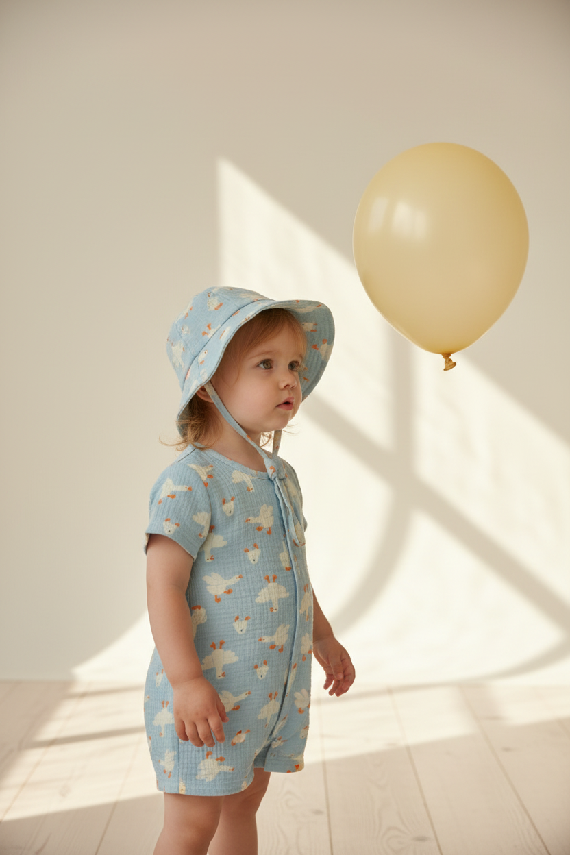 Удобно брать на море и прогулку. Благодаря дышащему материалу голова ребёнка не вспотеет, а удобные затяжки зафиксируют ее в удобном положении.